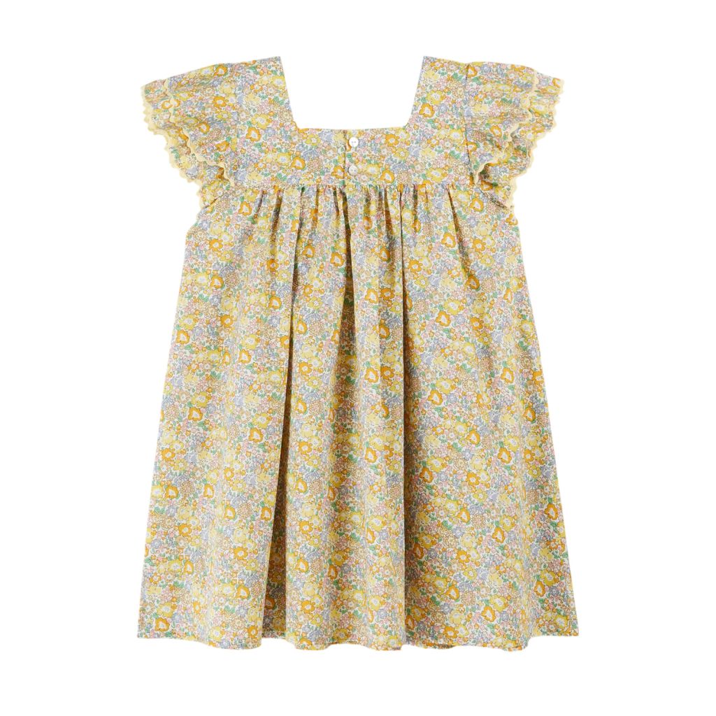 Dress in genuine Liberty of London fabric, printed with a multitude of small flowers, reminiscent of an English garden in full bloom.