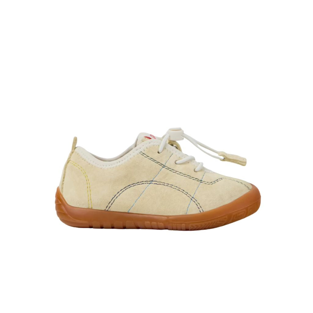 Yellow pigskin nubuck sneakers for kids with Podoactiva certified, removable OrthoLite® Recycled™ footbeds, elastic laces and rubber outsoles (20% recycled).