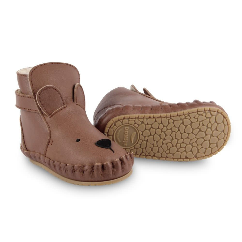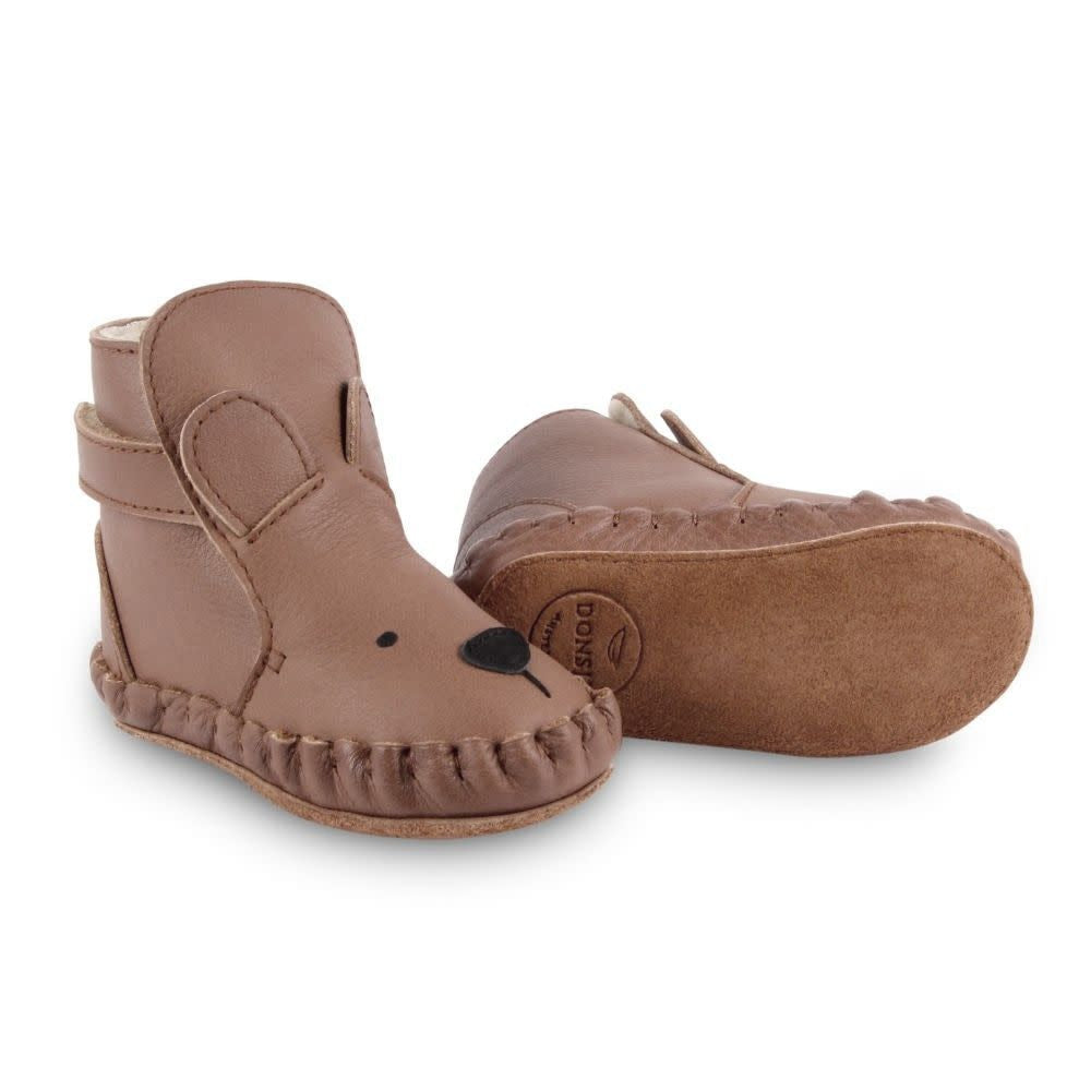 Love you Beary much! These warmly lined boots have a wide entry to easily fit every foot! They are a healthy basis for all little feet with an easy velcro fastening. Our classic Donsje characters on the toe of the shoe create an instant cute-factor overload! The Kapi Lining are the perfect, well-fitting shoes for those long-awaited first steps! Delivered in a cute gift bag.
