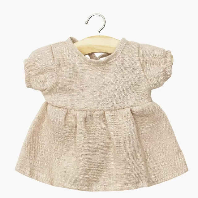 Minikane Babies Collection 28cm- Faustine dress with balloon sleeves in nude washed linen