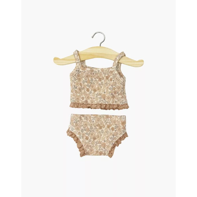 Minikane Clothing for 34cm Dolls - Girls' ribbed knit underwear with small cocoa flowers and lace