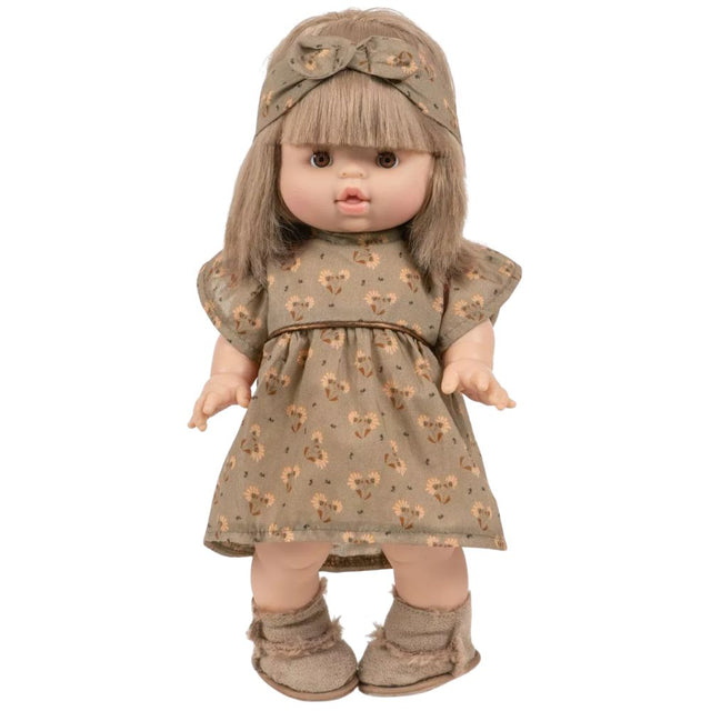 Minikane Clothing for 34cm Gordis Dolls- Daisy dress and its headband with a round knot in hazelnut washed linen