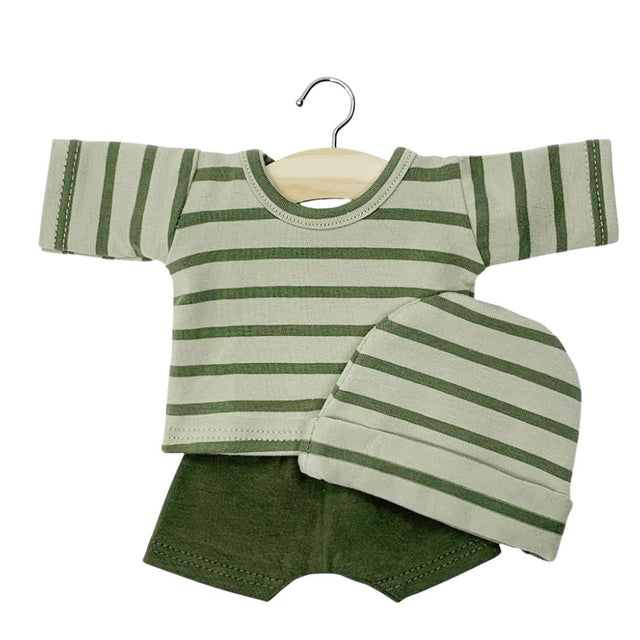 Minikane Clothing for 34cm Gordis Dolls- Luigi set of khaki green striped jersey sailor top and plain shorts with hat