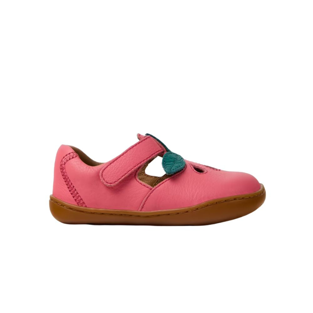 Pink and green calfskin closed sandals for kids with Podoactiva certification, removable EVA footbeds, hook-and-loop system and rubber outsoles (20% recycled).