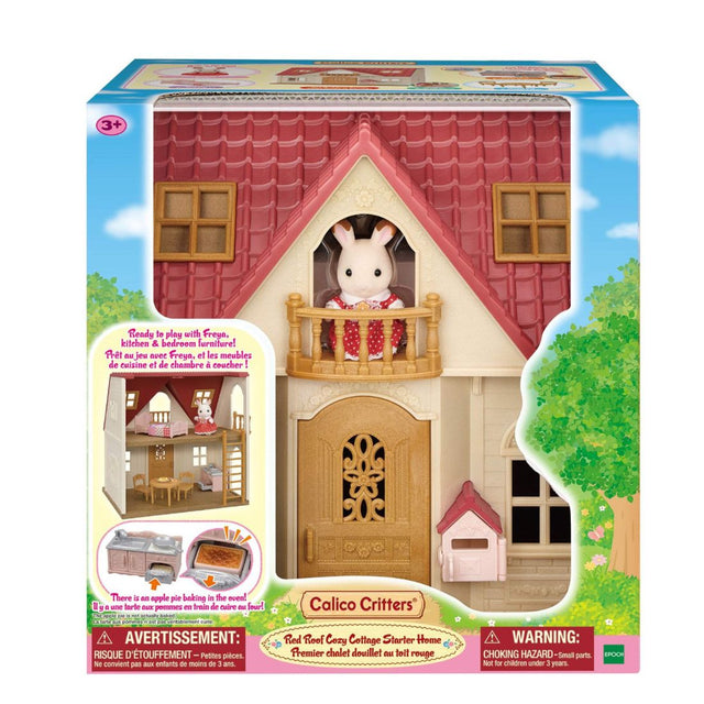 Set includes two story Red Roof Home with Freya Chocolate Rabbit figure and 15 pieces of furniture and accessories.