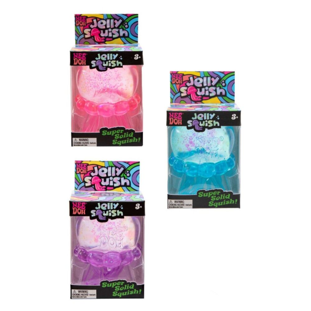 Have a fun-filled swim with NeeDoh's Jelly Squish! Let its super solid squish and groovy jellyfish shape with long tentacles offer you a sensory oasis wherever you go, beckoning you to ride the wave of relaxation. Reduce stress and keep your hands busy with the squishy, stretchy, soothing groove of Nee Doh!