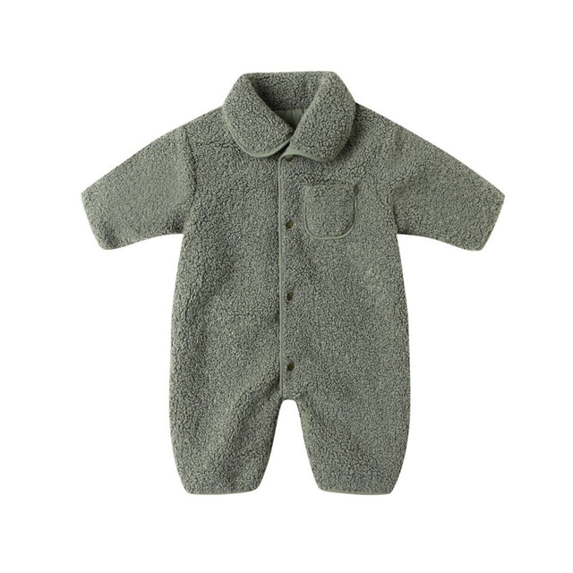This reversible Shearling Jumpsuit includes front snap buttons for easy layering, contrast binding, and a small chest pocket—perfect for keeping your little one bundled in style.
