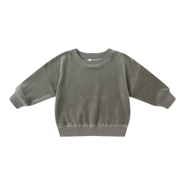 Quincy Mae Velour Relaxed Sweatshirt F - Forest / 6-12m is backordered and will ship as soon as it is back in stock.