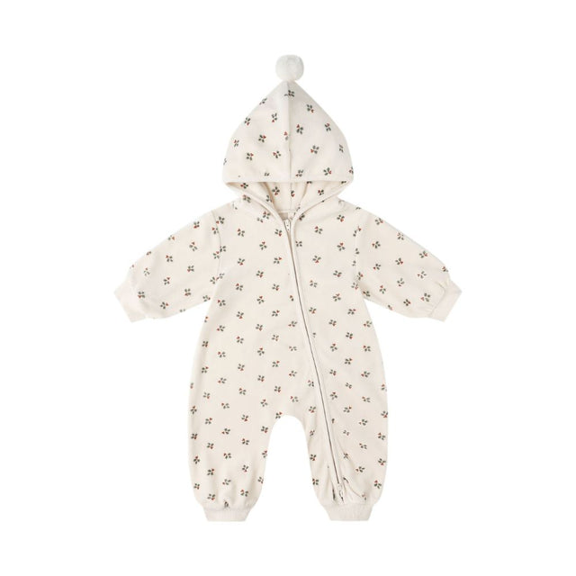 Quincy Mae Velour Zip Jumpsuit Holly Berry - Natural / 6-12m is backordered and will ship as soon as it is back in stock.